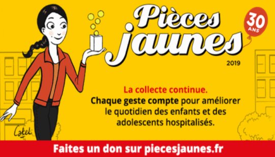 Le but est d’organiser des collectes de fonds avec un don minimum, les pièces jaunes de nos porte monnaies. Grâce à l’argent récolté par l’opération, la Fondation finance de nombreux projets pour améliorer la vie quotidienne des enfants et des adolescents hospitalisés, mais aussi celle de leurs proches et des équipes soignantes.
