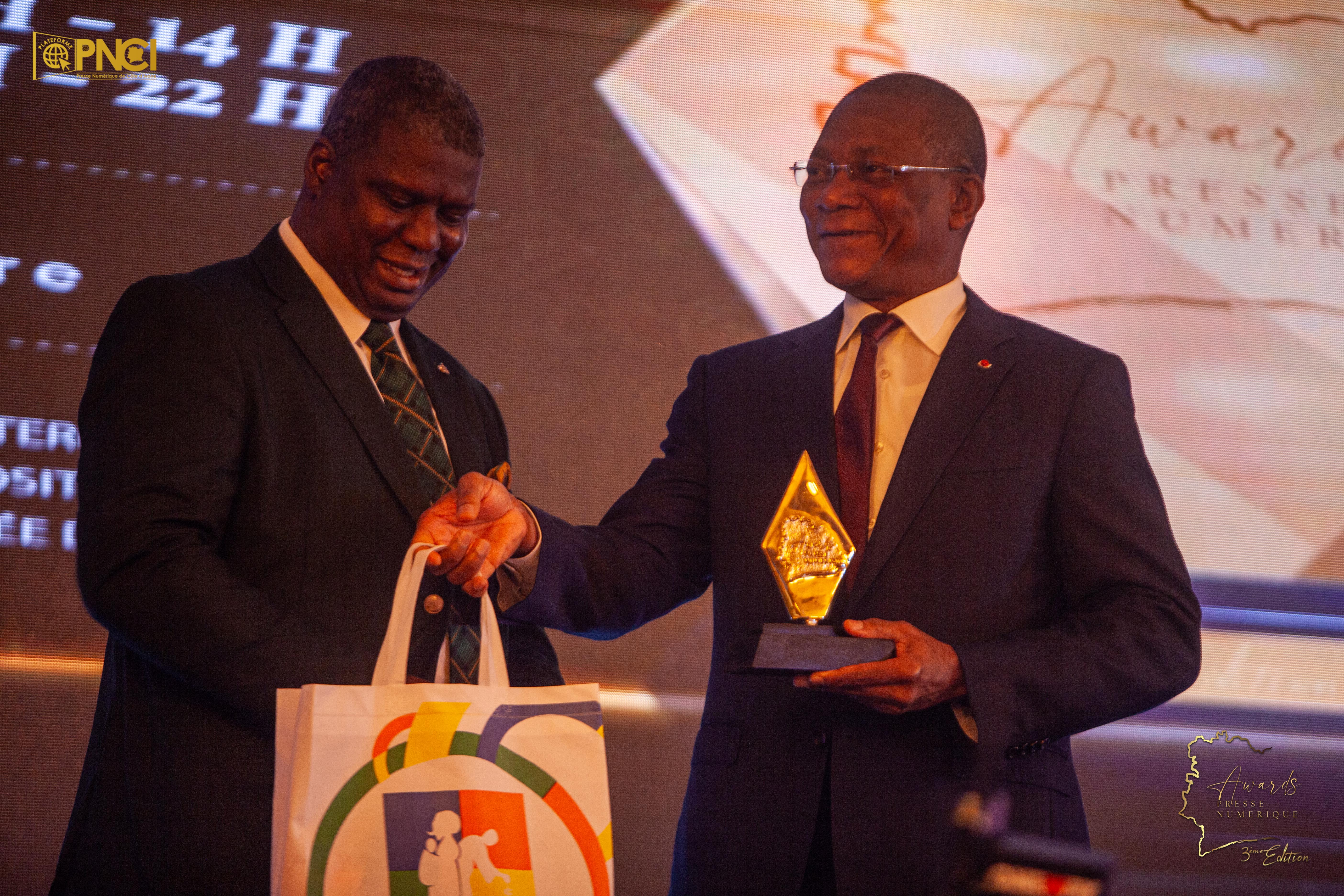 Cette 3ème édition des Awards de la Presse Numérique était l’occasion de faire une escale, de souffler et de célébrer les plus méritants. Si une personnalité a marqué son passage au ministère de la Communication et de l'Economie Numérique, ancienne appellation de la Transion Numérique et de la Digitalisation, c’est bel et bien Monsieur Bruno Nabagné Koné.