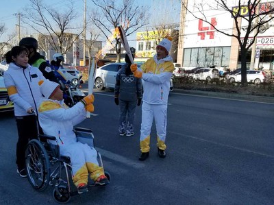 Yan Yuhong du Sichuan, qui a été recommandé par Samsung, le partenaire mondial des Jeux Olympiques et le sponsor des Jeux Olympiques d'hiver de PyeongChang, a participé au relais de la flamme olympique, durant l'après-midi, en tant que porteur de la flamme spécial. Samsung (Chine) a également fait don à Yan d'un fauteuil roulant électrique en 2013 par le biais de son programme « Swing of Love » pour l'aider à améliorer ses conditions de vie et d'apprentissage, tout en finançant sa réadaptation et son entraînement en 2014.