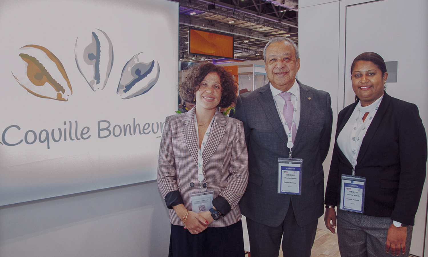 Excel Docks, Londres – World Travel Market (WTM) 2022 : Christian Lefèvre, accompagné de sa fille Aurélie (à gauche) et de Sandrine Saint Medar, représente avec conviction la vision mauricienne d’un tourisme durable et responsable sur la scène internationale.
