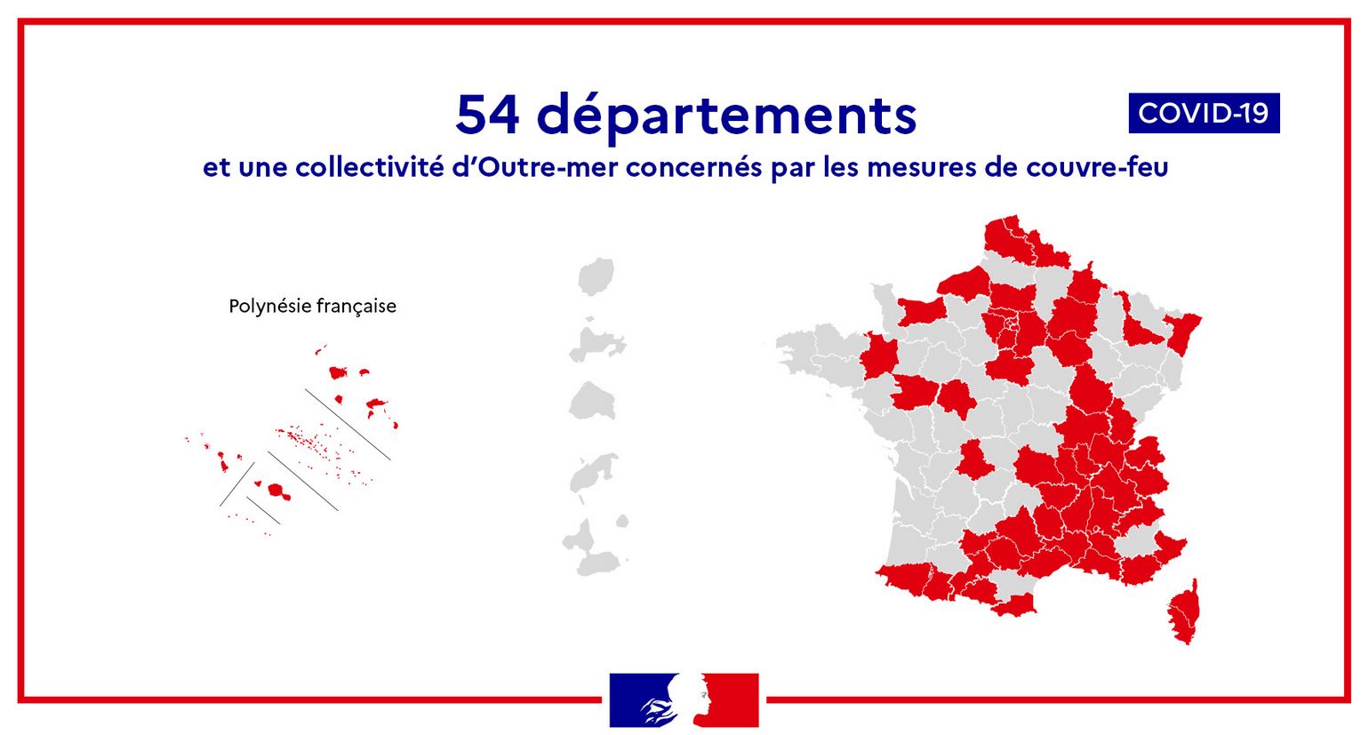 Le 22 octobre 2020, le Premier ministre a annoncé que 54 départements et une collectivité d’Outremer sont concernés par des mesures de couvre-feu, dont le département de la Haute-Garonne.