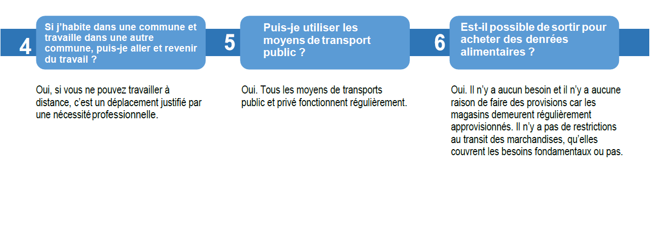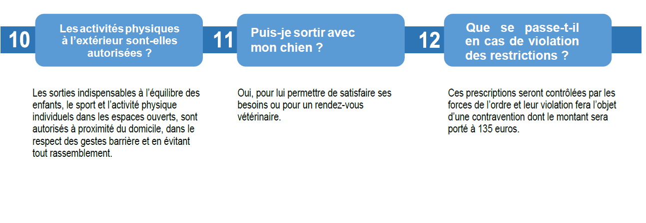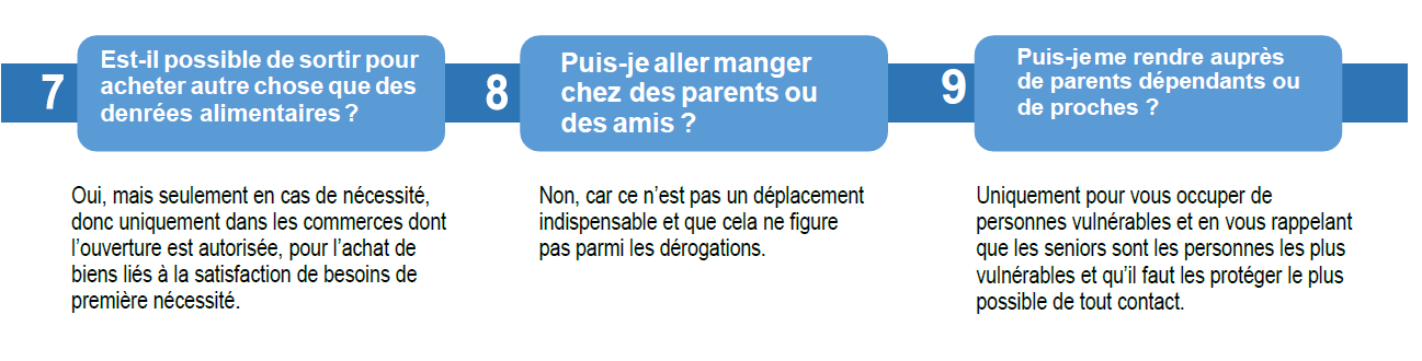 Les déplacements sont interdits sauf dans les cas suivants et uniquement à condition d'être munis d'une attestation pour :