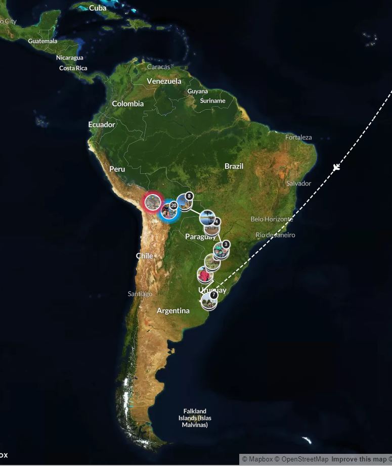 Nous sommes accueillis dans un collège pour participer aux répétitions de la prochaine fête nationale. Nous découvrons les premiers paysages de haute altitude et nous arrivons sans le vouloir le jour de la fête dans la petite ville de Poroma. En chemin comme à notre habitude nous prenons une femme Quechua qui marchait seule depuis des heures. Au village comme à notre habitude nous allons faire nos civilités au Maire de la commune puis ce sera un repas pris dans la rue au milieu de la population.