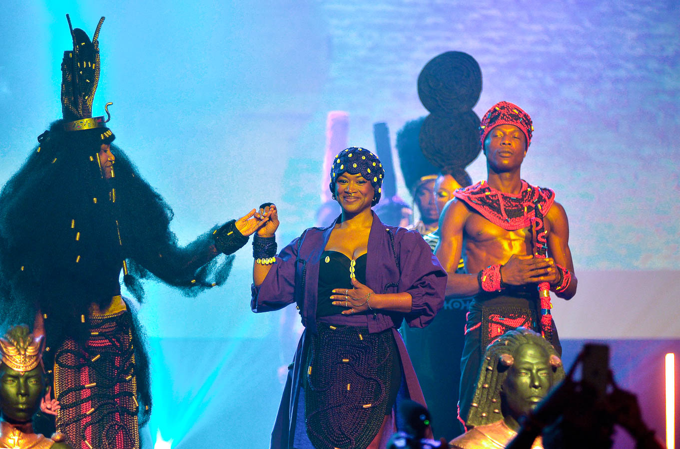 Le show « Divinity of Black », signé Murielle Kabile, a illuminé la grande scène du Pavillon 1, véritable théâtre des performances les plus spectaculaires du salon, lors de la dernière journée. Dans une atmosphère électrisante, sublimée par les jeux de lumière et la musique, le public a plongé dans l’univers singulier de la designer d’« hair-couture » au parcours atypique, qui a livré une création mémorable, entre textures afro et inspirations égyptiennes.