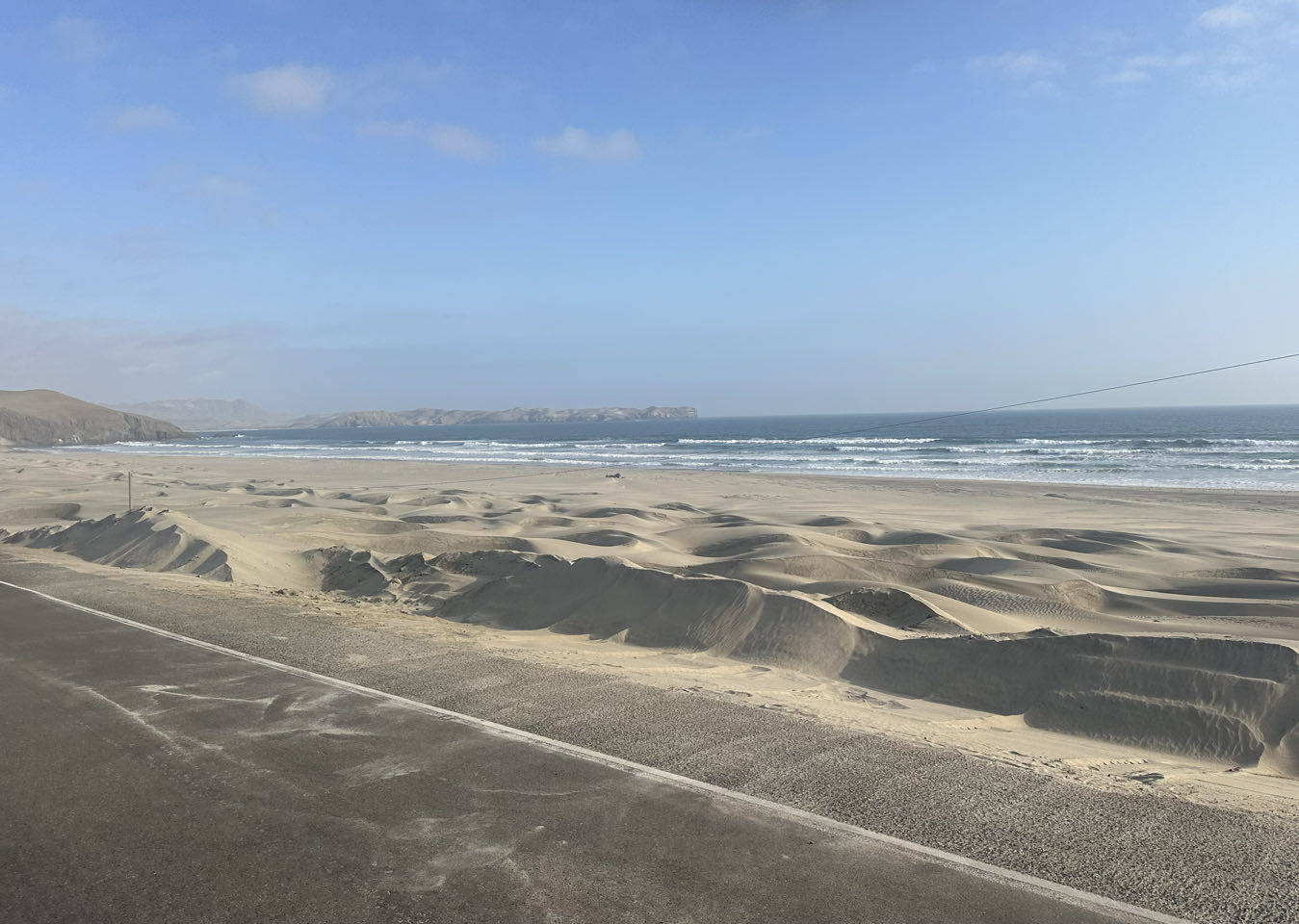 Nous avons retrouvé sur plusieurs centaines de kilomètres l’Océan Pacifique d’un côté et le désert de l’autre. C’était quand même long et monotone la panaméricaine, heureusement les bivouacs en bord de mer nous ont fait oublier la fatigue.