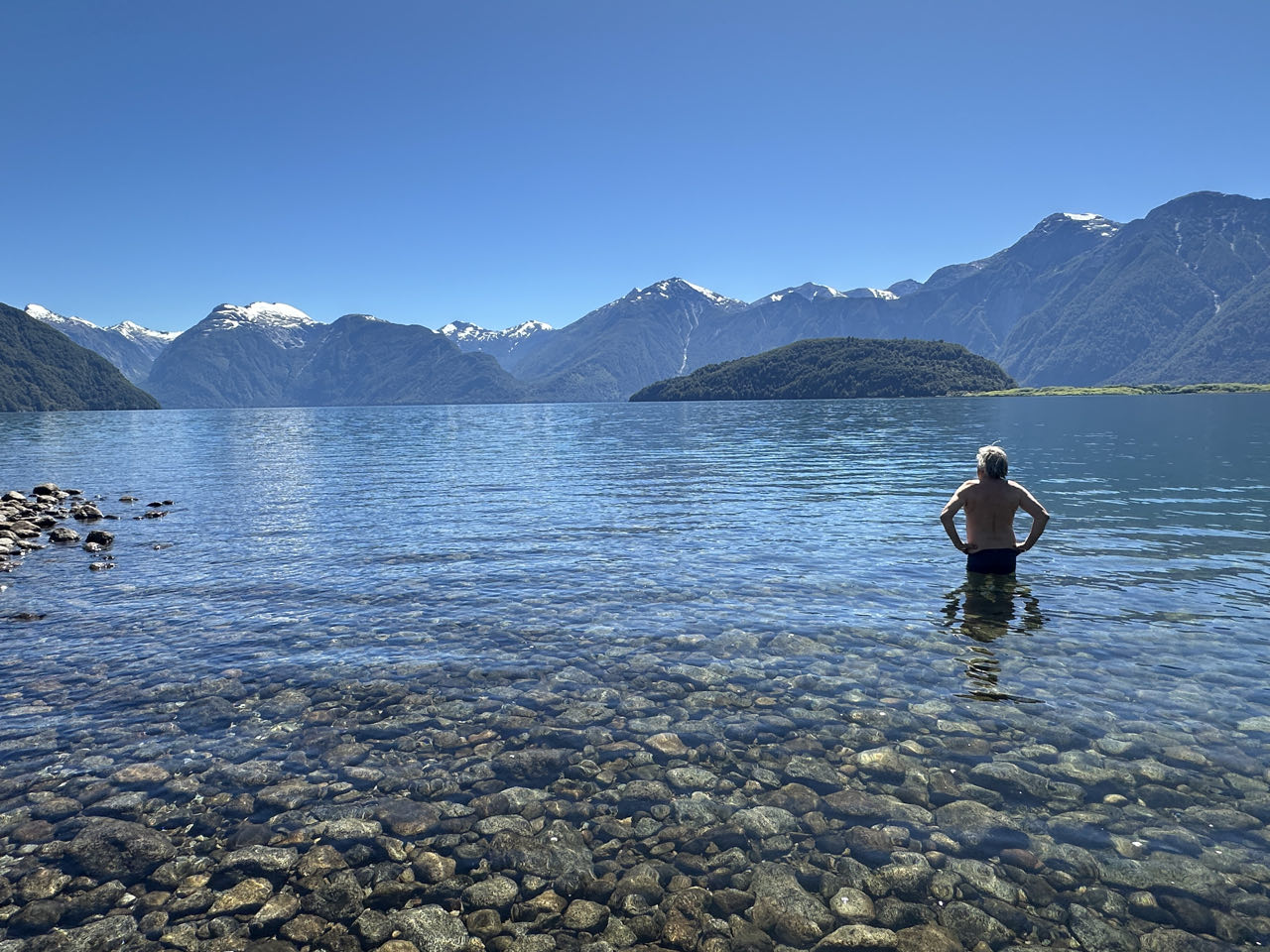 Nous poursuivons notre séjour sur le lac Yelcho, avec une journée farniente au programme. Le soleil était au rendez-vous mais l’eau était vivifiante