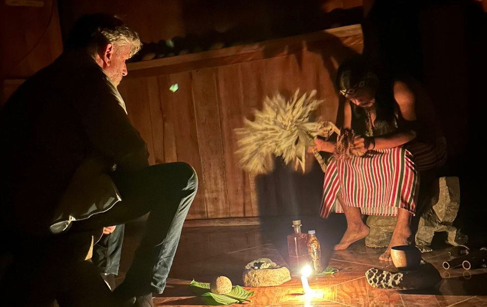 Tout au long de notre voyage nous nous attachons à vivre le quotidien des populations que nous rencontrons. C’est ainsi que nous avons participé à un incroyable rituel ancestral pratiqué depuis les temps immémoriaux par les civilisations précolombiennes. Nous avons rejoint une cérémonie de San Pedro avec Temazcal. Le San Pedro est un cactus psychotrope qu’il faut ingérer avant de pénétrer, en sous vêtement, en rampant dans le temazcal. Un grand feu de bois porte à ébullition des pierres volcaniques, qui ont été déposées avec des pinces cérémonielles, au centre du Temazcal. Le chaman installe en cercle les participants et débute la cérémonie qui sera ponctuée de chants sacrés, rythmés par des tambours. L’ensemble divisée en quatre séquences durera une grande partie de la nuit. La première séquence sera la purification physique avec la très intense transpiration, puis l’évocation des ancêtres, la prière à la terre au vent et au corps et enfin l’éveil spirituel. La sortie se déroulera en rampant comme elle avait débuté mais en étant lavée, purifiée, régénérée. Nous n’oublierons jamais cette incroyable et bénéfique expérience.