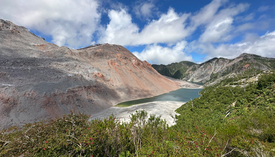 C’est avec émotion et une pointe d’inquiétude que nous avons effectué l’ascension du volcan 🌋 Chaiten. Ce dernier toujours en activité avait été à l’origine de la destruction de la ville de Chaiten en 2008. Au sommet nous distinguons ses fumerolles et découvrons ses pentes couvertes d’arbres morts. Heureusement après l’effort, le réconfort, un moment privilégié où nous goûtons les liqueurs locales au soleil couchant du Pacifique.