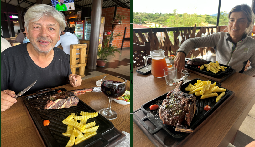 IL EST ARRIVÉ !! Dix jours après notre arrivée à Cajamarca le ventilateur d’Ulysse vient d’être livré , nous allons enfin pouvoir reprendre la route. Nous prenons congés de nos hôtes, Flor et Elena et nous fêtons l’événement dans le meilleur restaurant de la ville. Devinez ce que nous dégustons ?