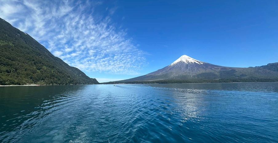 Nous naviguons sur le lac de Todos los Santos pour découvrir le volcan Osorno sous un autre angle. Puis nous ferons quelques pas vers son sommet ( 2660 mètres) en nous réservant pour son voisin le volcan Villarrica. La zone des lacs est très sismique au Chili et elle compte de très nombreux volcans en activité.