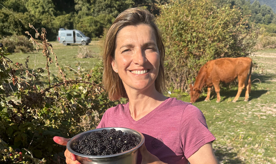 Journée tranquille avec repos dans les eaux thermales , puis cueillette de mûres à l’issue d’une piste improbable. Fin de journée sur un spot de rêve avec dégustation d’un excellent clafoutis … à la mûre !