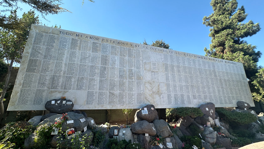 Journée de mémoire au cours de laquelle nous avons visité le cimetière central de Santiago. Nous nous sommes recueillis sur les tombes de Salvador Allende, Victor Jara et sur le mur en mémoire des disparus des années sombres de la dictature. Enfin nous avons visité la maison de Pablo Neruda poète et écrivain chilien, prix Nobel de Littérature et actif militant des droits de l’homme. Hasta la victoria siempre