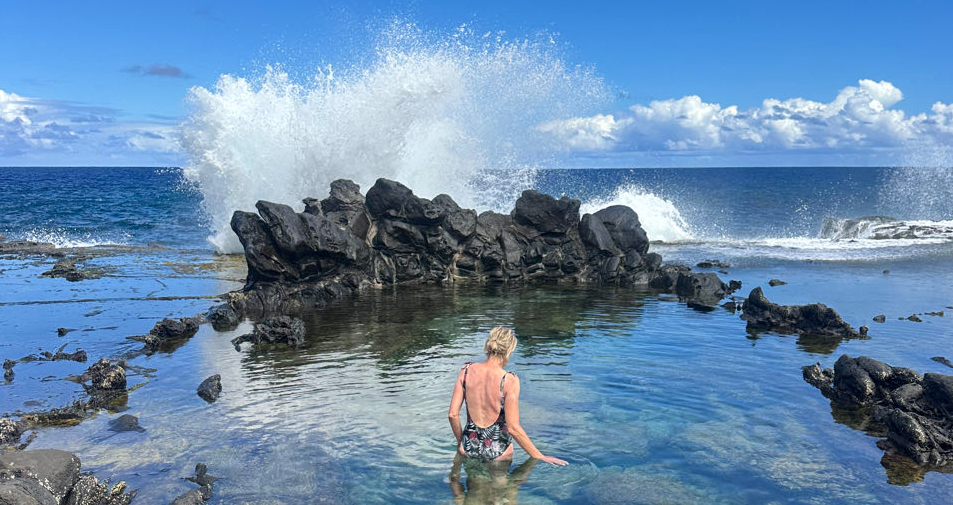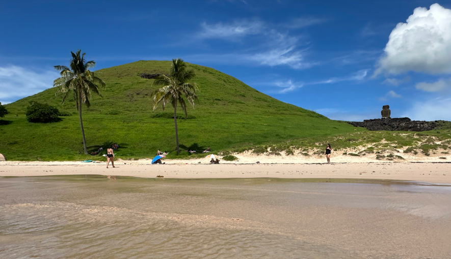 L’île de Pâques c’est aussi une île polynésienne. Il n’y a pas beaucoup de plages mais celles qui existent sont magnifiques. Nous faisons une pause dans la découverte des Moais et profitons de l’eau chaude de la plage d’Anakena. Nous en profitons pour explorer la côte Nord de l’île.