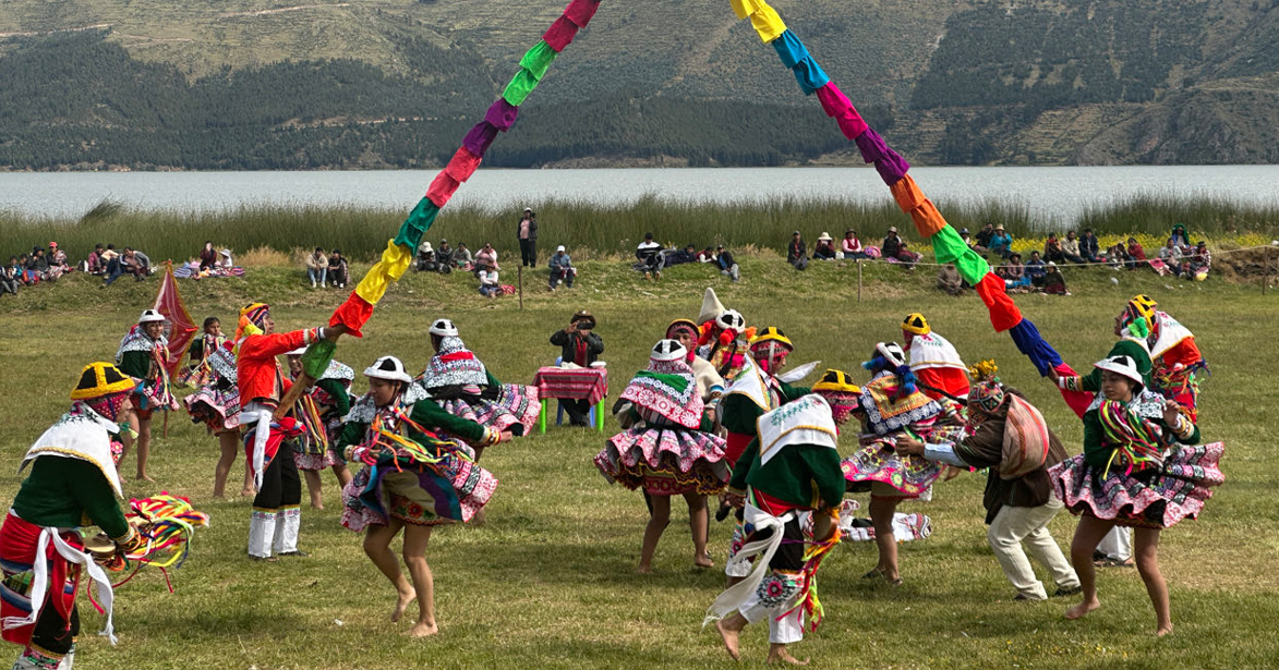 Nous avons eu la chance d’assister dans le village de Sangarara, sur le bord de la lagune, à l’une des fêtes traditionnelles les plus importantes, celle de Cocha Raymi ( La fête de l’eau). Tous les villages alentours étaient rassemblés, c’est une fête très populaire à l’occasion de laquelle la gastronomie locale est à l’honneur … notamment la dégustation des fameux cuys, ces adorables cochons d’Inde rôti au four. C’est aussi l’occasion d’un spectacle inédit avec l’arrivée de l’Inca et de son épouse depuis la lagune sur une barge royale. Puis une représentation toute l’après-midi de danses péruviennes rythmées et haute en couleurs. Cela a aussi été l’occasion d’être repéré par les autorités qui n’ont pas manqué d’honorer la présence de deux étrangers, notamment un ancien Maire français. Beaucoup de médias et de groupes de danseurs nous ont interpellé et le Maire de la commune ( en costume vert) nous a offert des cadeaux. Ce fut une journée riche en émotions et très authentique.