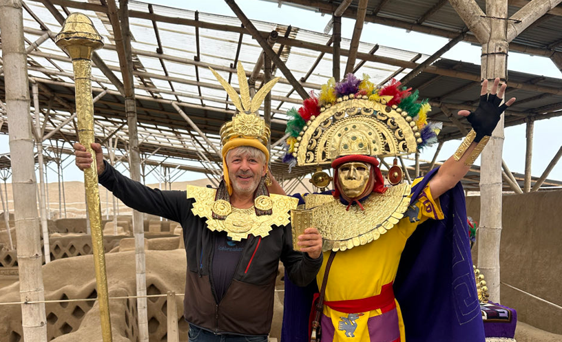 Ce sont nos derniers jours au Pérou 🇵🇪… Pour la circonstance nous sommes allés sur les traces du nouveau Pape 🇻🇦 dans le diocèse de Chiclayo dont il était l’Evêque. Ici la Cathédrale comme la Mairie affichent des portraits géants de Léon XIV. L’œcuménisme religieux régne à défaut de notre chère laïcité républicaine. Nous découvrons plus tard un nouveau site archéologique exeptionnel celui de la tombe du Seigneur de Sipan et de son trésor. Ce souverain règnait dans les années 250 à 300 après Jésus-Christ, il appartenait à la civilisation Moche. Le trésor avec lequel il a été enterré et d’une richesse incroyable il est du même niveau que la tombe égyptienne de Toutankhamon. Il faut savoir que si la civilisation Inca est la plus connue, c’est parce qu’elle est la plus récente et que c’est celle que les conquistadores ont découverte lorsqu’ils sont arrivés en Amérique du Sud. Beaucoup d’autres civilisations ont précédées les Incas comme les Chavin, les Moche, les Tiwanaku ou les Chimú.