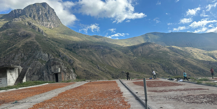 Dernier jour sur la côte Pacifique du Pérou et nous pénétrons en suivant en Équateur. Aucun doute nous sommes bien dans un pays producteur de cacao, ici il sèche sur la route.