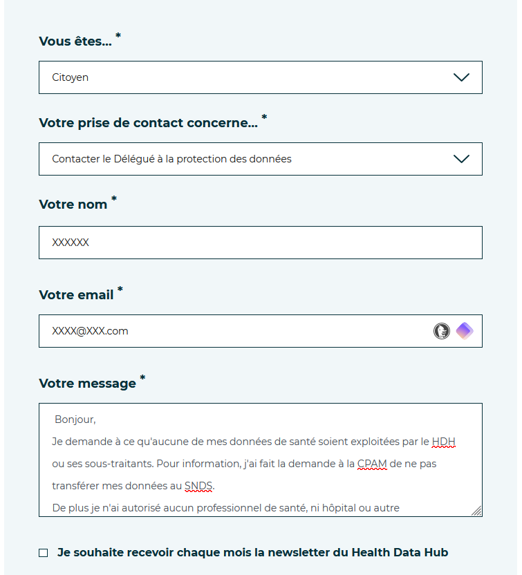 • Aller sur le site du Health Data Hub et de même faire jouer vos droits informatiques et liberté.