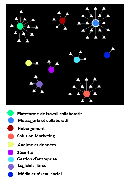 La dernière cartographie est l'image de quelques solutions souveraines françaises couvrant les besoins d'une entreprise en matière de numérique