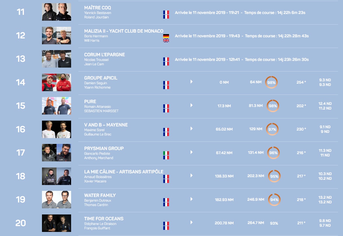 Classement IMOCA à 16h00