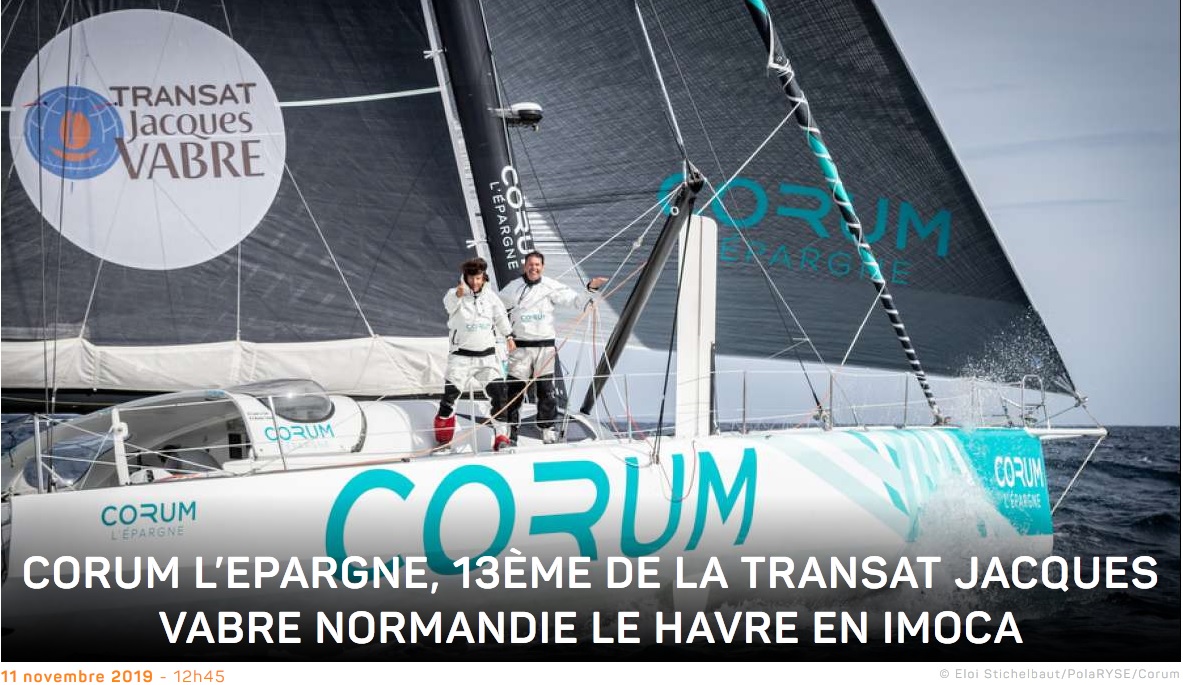 Ce lundi 11 novembre, à 12h 41mn 30s (heure française), Nicolas Troussel et Jean Le Cam ont franchi la ligne d’arrivée de la 14e édition de la Transat Jacques Vabre Normandie Le Havre en 13e position de la catégorie IMOCA. Le duo aura mis 14 jours 23h 26mn et 30s pour parcourir les 4 350 milles théoriques depuis Le Havre à la vitesse moyenne de 12,10 nœuds, mais il a réellement parcouru 4777 à 13,29 nœuds. Son écart au premier Apivia est de 1j 11h 18mn 30s.
