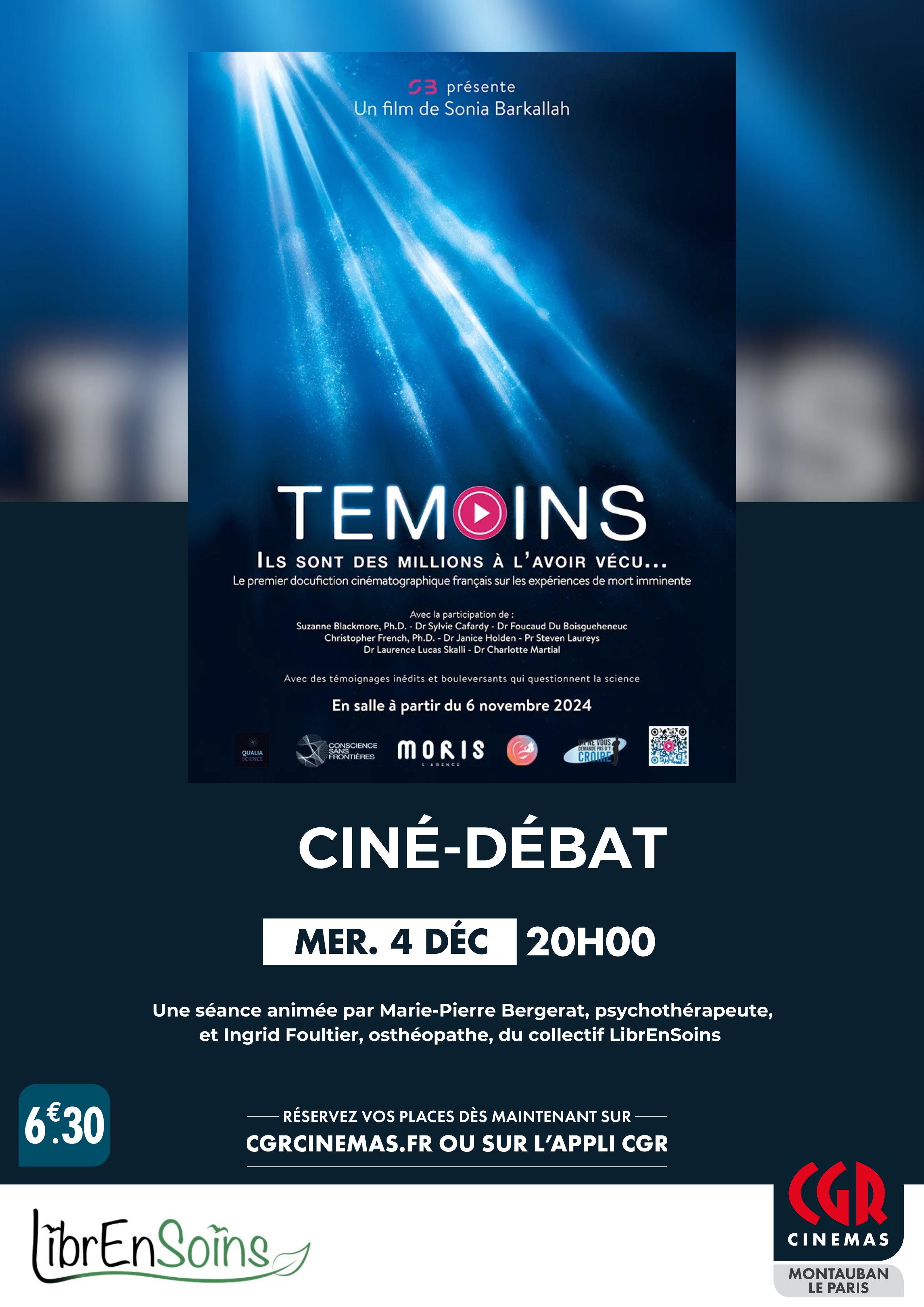 Le film sera suivi d'une séance d'échanges animée par Marie-Pierre Bergerat, psychothérapeute, et Ingrid Foultier, ostéopathe, toutes deux membres du collectif LibrEnSoins.