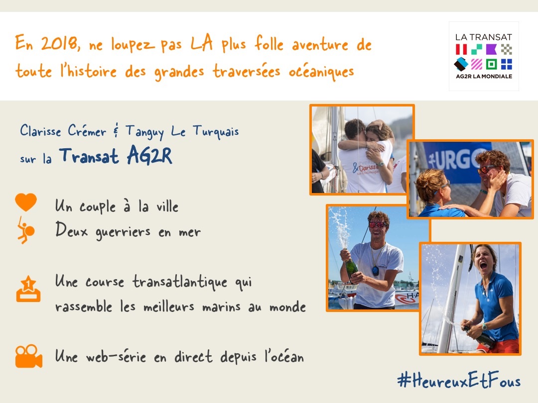 Il reste une petite place de partenaire pour la Transat AG2R (plus une petite cerise sur le gâteau si vous le valez bien !) Premier arrivé, premier servi, répondez à ce mail tout de suite ou écrivez à notre grande responsable commerciale : clarissecremer@gmail.com ! (eh oui dans une équipe de 2 faut bien avoir plusieurs casquettes ;) )