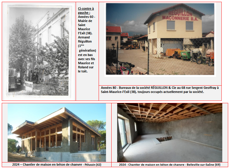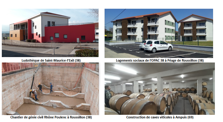 Parmi les réalisations récentes de la société RÉGUILLON & Cie figurent la construction, extension et rénovation de caves viticoles de la vallée septentrionale du Rhône, la ludothèque de Saint-Maurice-l’Exil (38), des médiathèques, des crèches, ainsi que de nombreux logements collectifs à Roussillon (38), Saint-Pierre de Bœuf (38) et sur tout le territoire d’EBER.