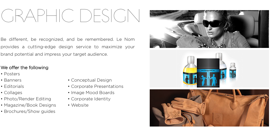 Be different, be recognized, and be remembered. Le Nom provides a cutting-edge design service to maximize your brand potential and impress your target audience.