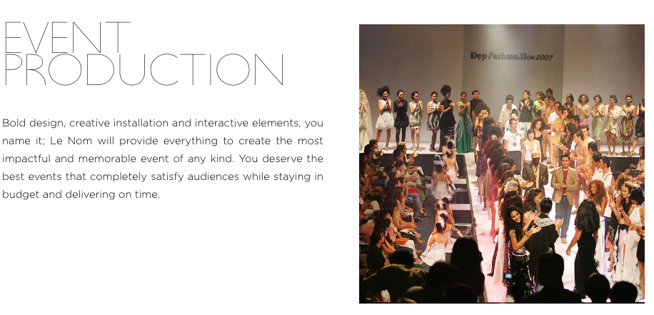 Le Nom, a leading visual agency that is dedicated to solving challenges and elevating communication through creativity, from interactive design, publishing, fashion consulting to event management.