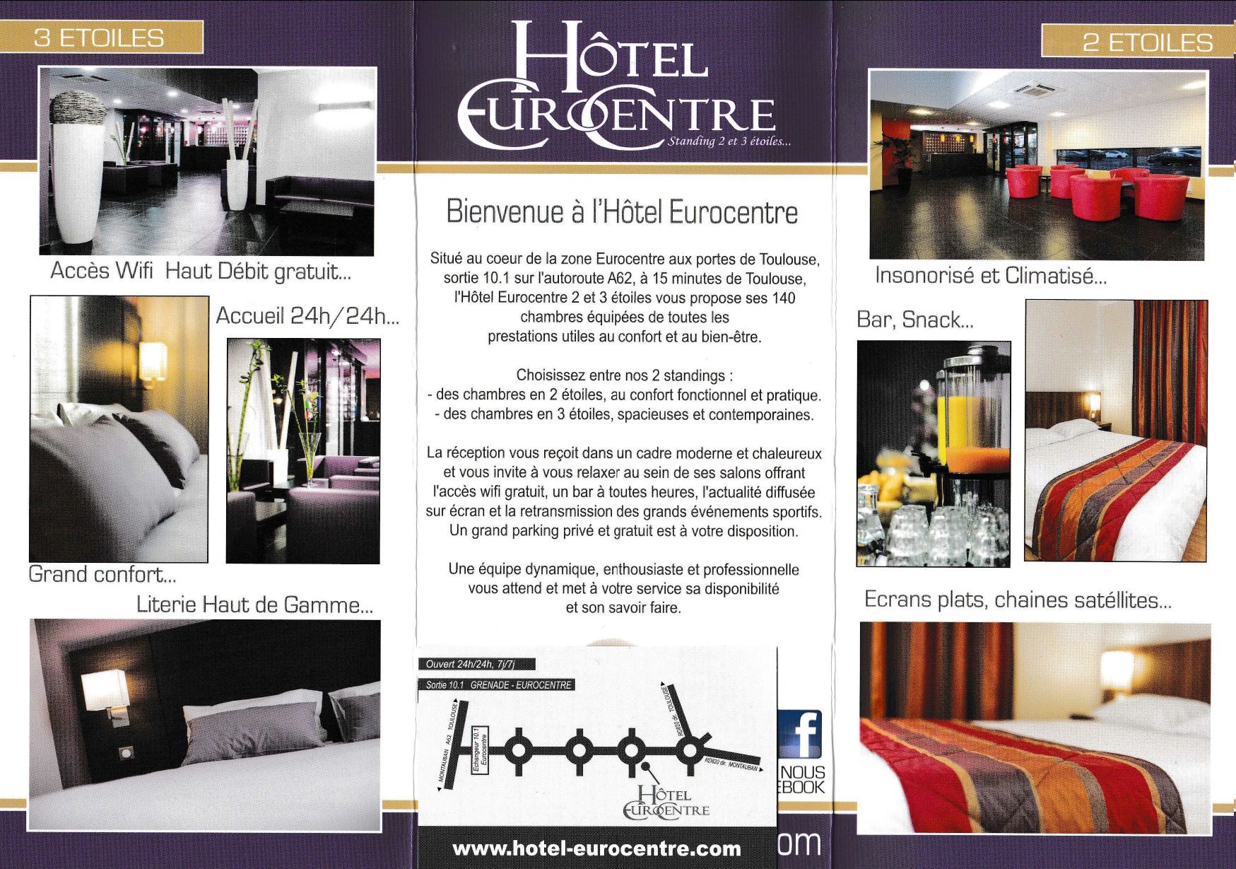 Bienvenue à l'Hôtel Eurocentre, Toulouse Nord, 24h/24h, 7j/7j, Standing 2 & 3 étoiles, Wifi...
