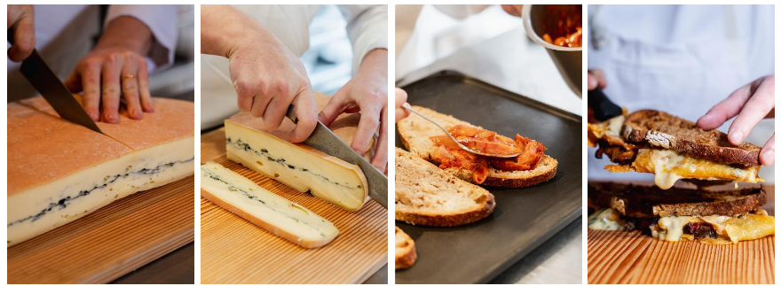 La recette, pas à pas : Grilled cheese au Morbier, oignons confits à la Harissa fumée