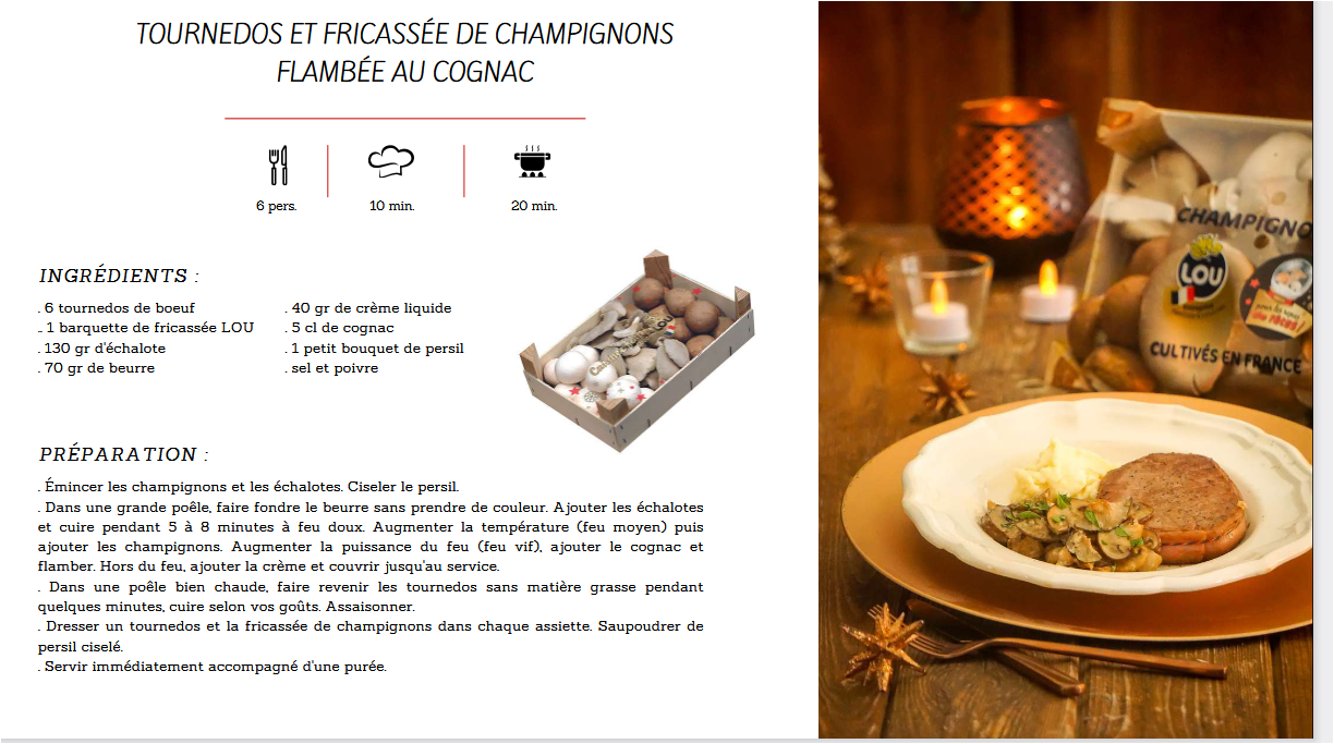Pour développer la consommation de champignons frais français auprès des consommateurs, LOU propose une large gamme segmentée par usage : à croquer, à poêler, à farcir, à griller…Une multitude de déclinaisons possibles tout au long du repas pour ce produit incroyablement sain et délicat. Zoom sur les références idéales pour Noël et quelques idées recettes originales.