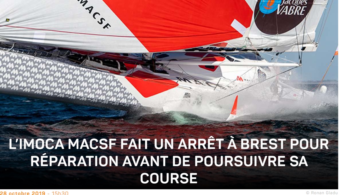 A la suite du talonnage à la bouée d’Etretat le 27 octobre, l’équipage en lien avec le team manager a décidé de faire route vers Brest pour réparer les dégâts causés à la quille. L’IMOCA MACSF reste en course et repartira dès que possible.
