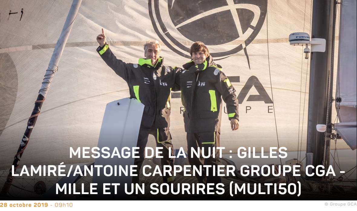 Merci à tous de nous avoir accompagnés sur ce départ de la Transat Jacques Vabre 2019... On ne va rien lâcher, le jeu de la stratégie a déjà commencé, nos concurrents sont passés au sud de la zone interdite des Gasquet alors que nous sommes passés au nord...