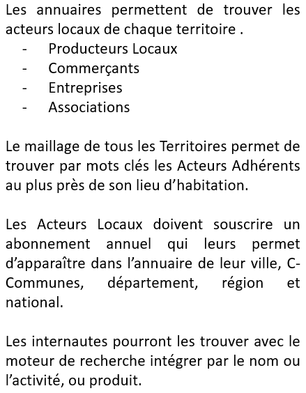 3/ L’annuaire des Acteurs Locaux Adhérents par territoire (Agriculteurs, Entreprises, Commerçants et associations)