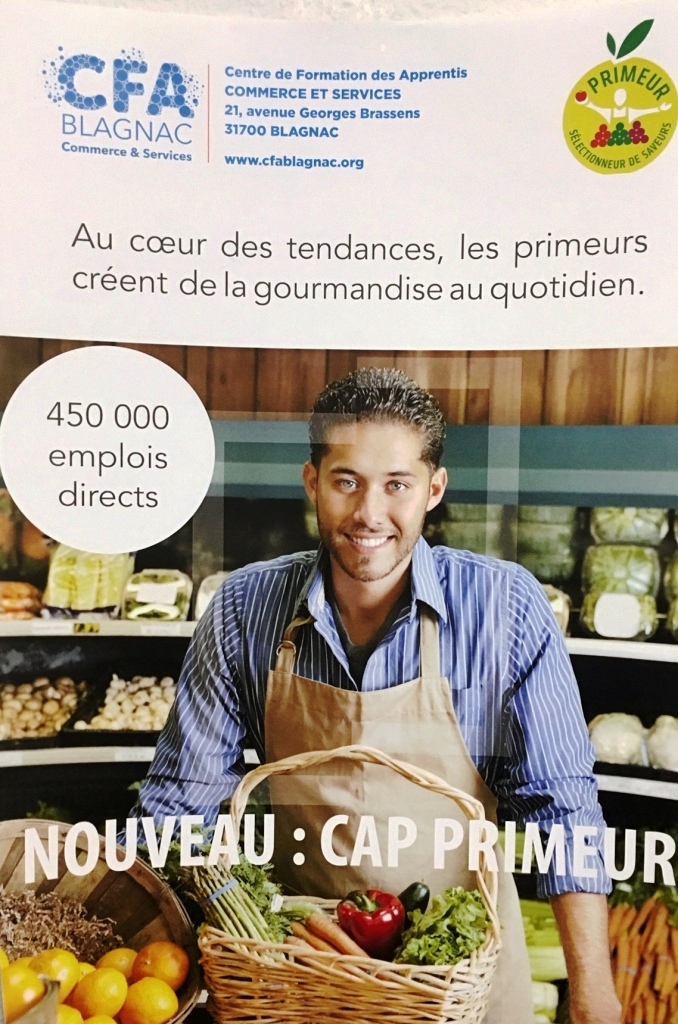 Monsieur MACHARD, Directeur du CFA "Commerce & Services" , 21, avenue Georges BRASSENS, 31700 Blagnac a le plaisir de vous annoncer l'ouverture d'une section "CAP Primeur" dès la rentrée 2019/2020.