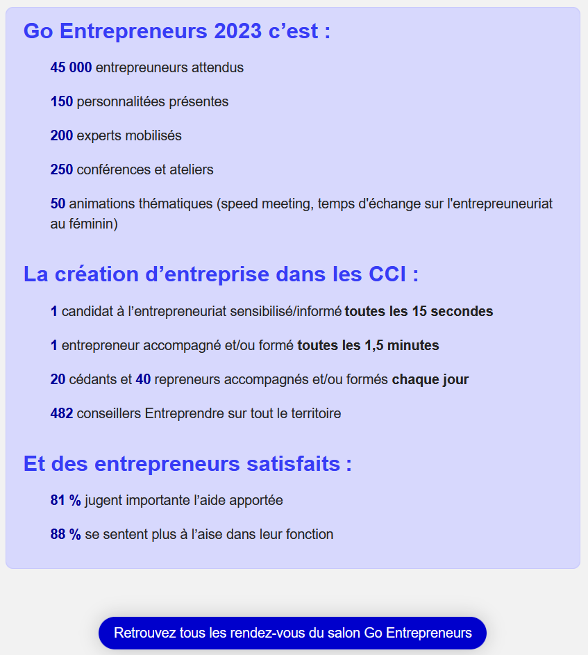 À découvrir tous les rendez-vous de la CCI PIF et de son Président Dominique Restino : Les temps forts de la CCI PIF à Go Entrepreneurs 2023