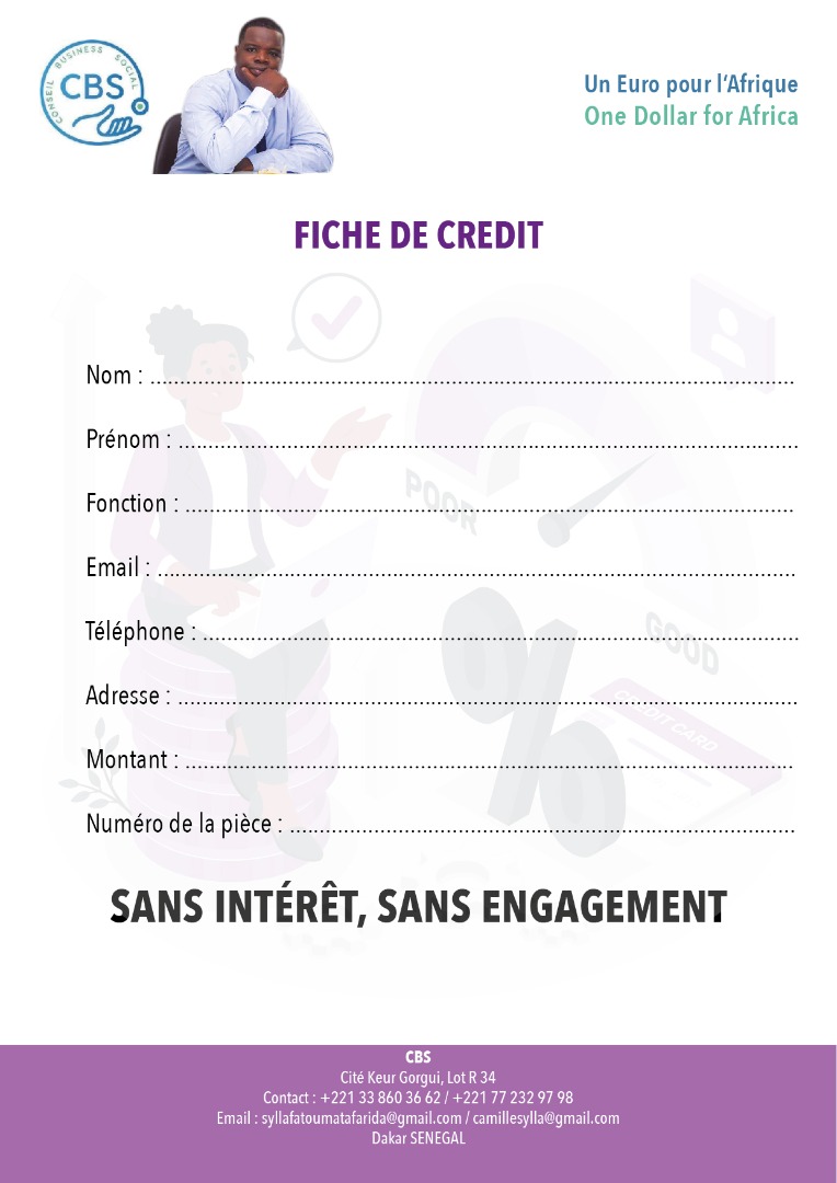 Camille Bounama SYLLA est le fondateur de CBS (CONSEILS BUSINESS SOCIAL) et de l'Association 'Un Euro Pour l’Afrique' lance un projet de 100 micro financements sans engagement sans intérêt à Dakar (Sénégal).