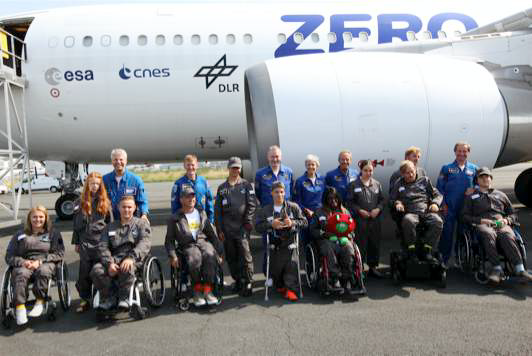 Le 24 août dernier, ces enfants atteints de handicap sont venus d’Allemagne, de Belgique, d’Italie, d’Angleterre et de France pour embarquer à bord de l’Airbus A310 Zero-G de Novespace, filiale du Centre National d’Etudes Spatiales (CNES). Les enfants étaient invités par les organisateurs de l’opération « Rêves de Gosse », par l’Agence Spatiale Européenne (ESA) et par Novespace. Ils étaient accompagnés par six astronautes européens et de deux adultes handicapés eux aussi.