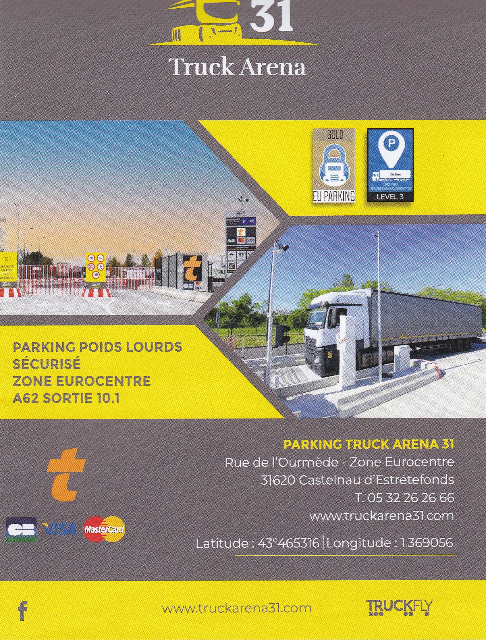 PARKING 31 et tous services Poids-lourds / Remise 30% menu midi et soir aux routiers clients du parking / Coordonnées GPS = Latitude 43°465316 / Longitude 1.369056