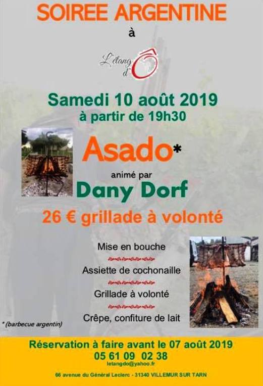 Réservation obligatoire avant mercedi 7 août 2019 au 05 61 09 02 38 ou par courriel via letangdo@yahoo.fr